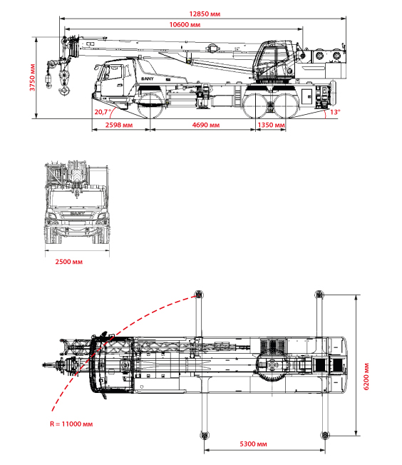| Мин. радиус поворота оголовка стрелы | 12,85 м |
